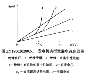 图ZY1800202002-1曲线4所示。泄漏电流试验是指在一定的直流试验电压范围内,对绝缘施加不同数值的直